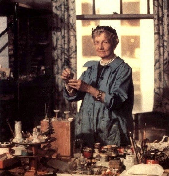When she was 8 years old, her family moved to Chicago, Illionois. It was at this time that her mother gave her a four-shelf mahogany cabinet with a glass front in which to display her miniatures. She continued her collecting throughout her childhood.